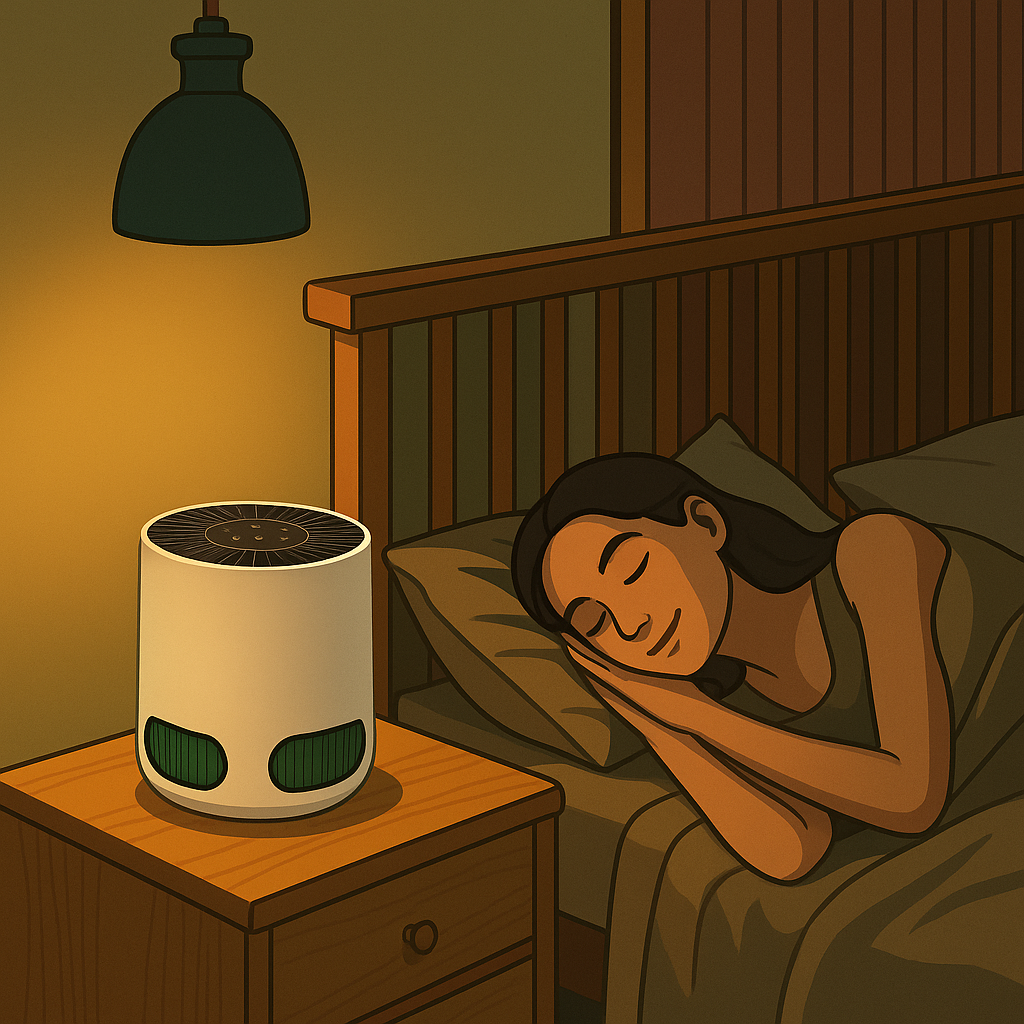 Our air purifiers operate at 25-55 dB depending on the fan speed setting. On the lowest setting, it's whisper-quiet at just 25 dB, making it perfect for bedrooms and offices.